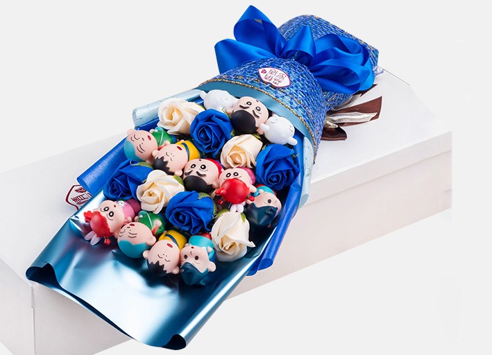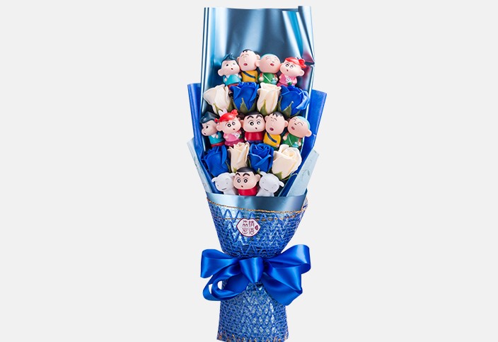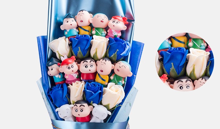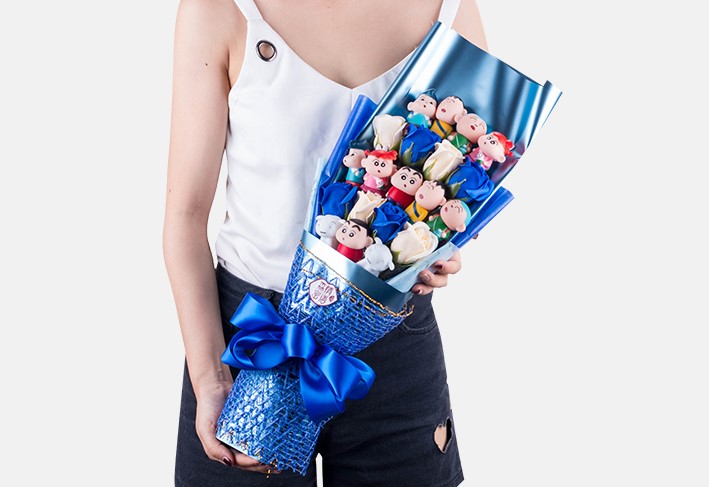 ช่อดอกไม้ชินจังจอมแก่น จัดทรงสวยงาม เหมาะสำหรับให้เป็นของขวัญ ของขวัญวันเกิด ของขวัญวันวาเลนไทน์ ของขวัญวันครบรอบ ช่อดอกไม้รับปริญญา